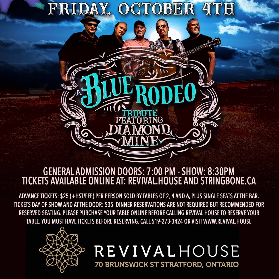 * Friday, October 4th, 2024 - 8:30pm * Diamond Mine: A Tribute to Blue Rodeo Revival House, Stratford, ON
